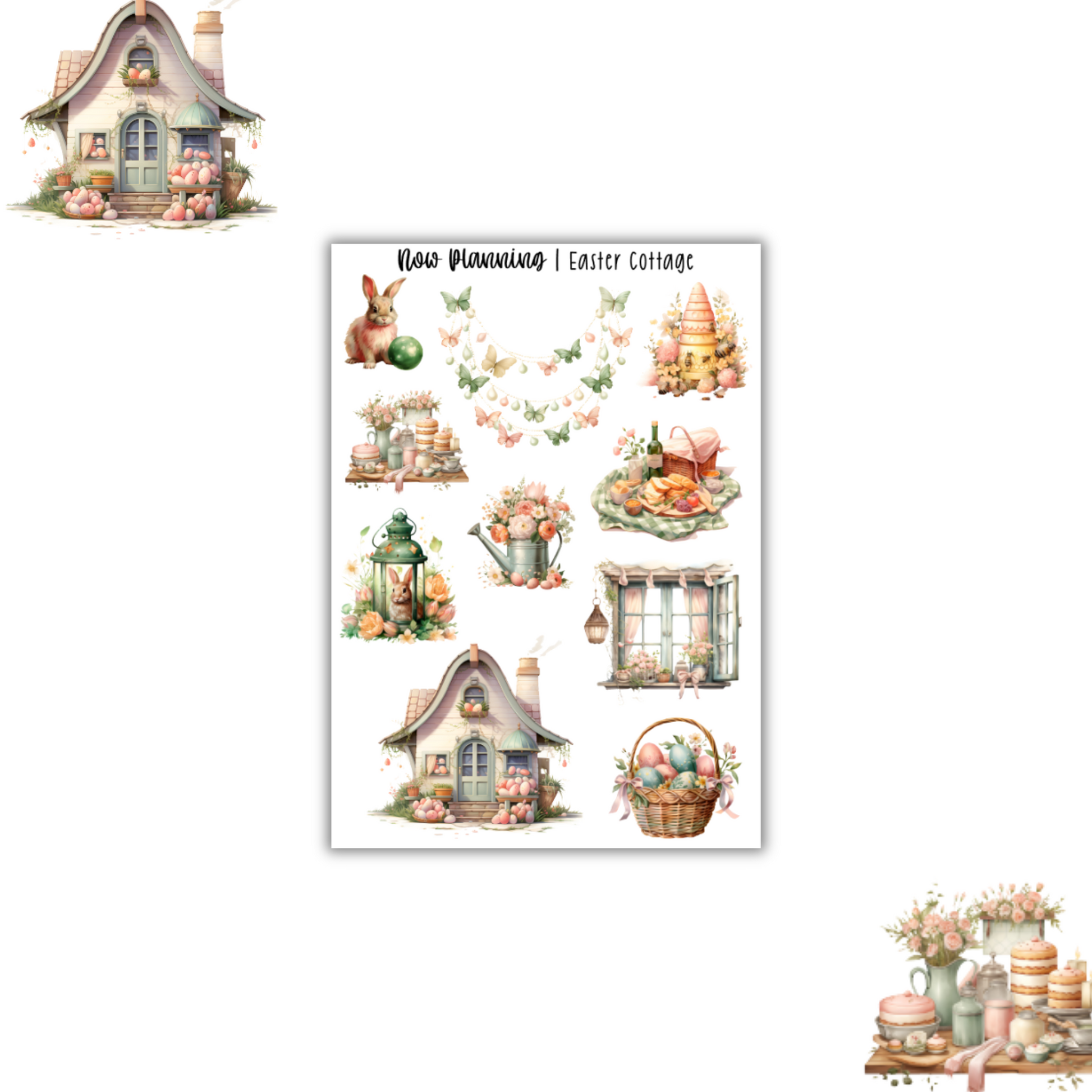 Easter Cottage Sticker Sheet | Journal Stickers, Planner Stickers, Scrapbook Stickers