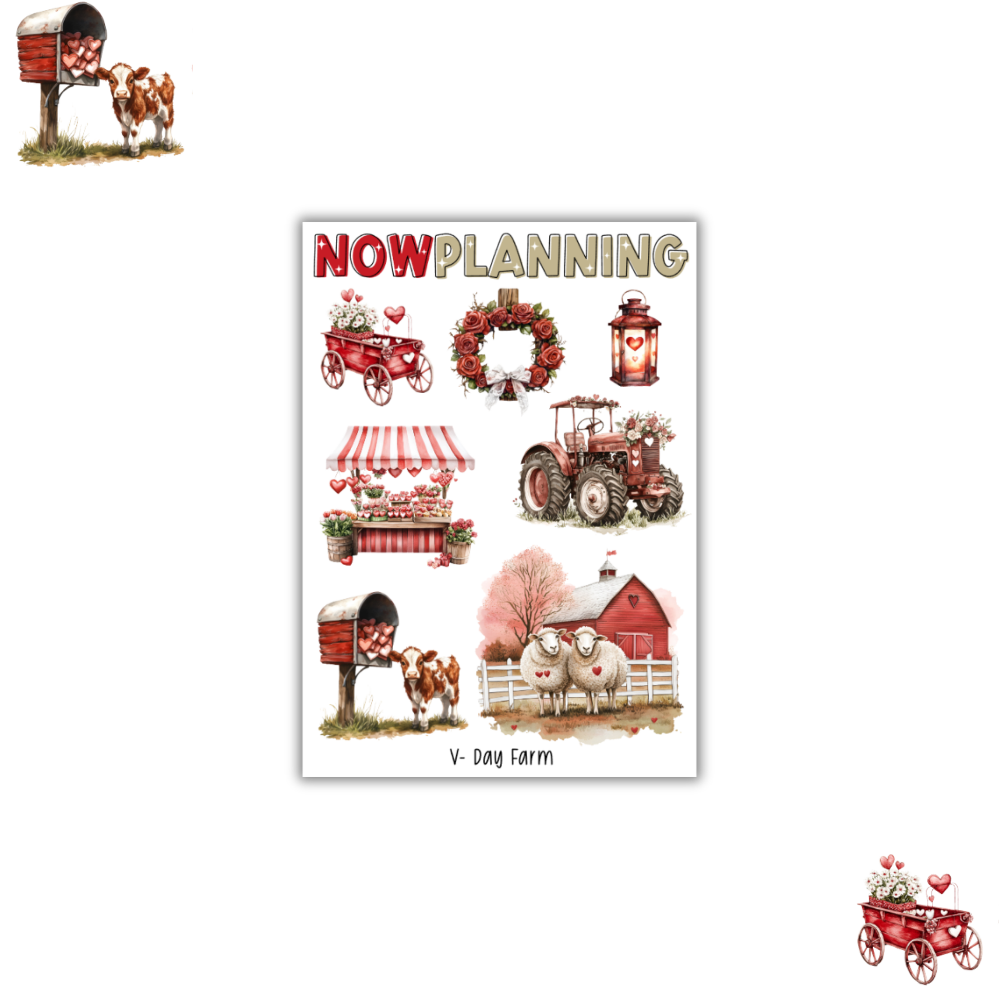 V-Day Farm Sticker Sheet | Valentine's Day Stickers | Journal Stickers, Planner Stickers, Scrapbook Stickers